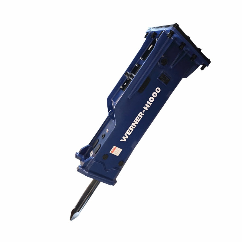 Picon hidraulic Werner-H1000 este un picon hidraulic robust și eficient, ideal pentru lucrări de demolare și excavare. Acesta are un diametru al dălții/spitului de 100 mm, fiind adaptat pentru utilaje cu o clasă de greutate de 10-15 tone. Greutatea totală a piconului este de 1003 kg, iar presiunea de operare recomandată este de 150-170 Kg/cm2, asigurând performanțe optime în exploatare. Debitului uleiului hidraulic variază între 80-110 l/min, iar frecvența de lucru atinge până la 350-700 bătăi pe minut. În plus, acesta este echipat cu furtunuri hidraulice de 19.05 mm și oferă o energie de impact impresionantă de 1460 Jouli, garantând fiabilitate și eficiență în cele mai dure condiții. Atasamentul este ideal pentru excavatoare: Caterpillar, Jcb, Hitachi, Takeuchi, Bobcat, Komatsu, Kubota, Hyundai, Volvo, Liebherr.