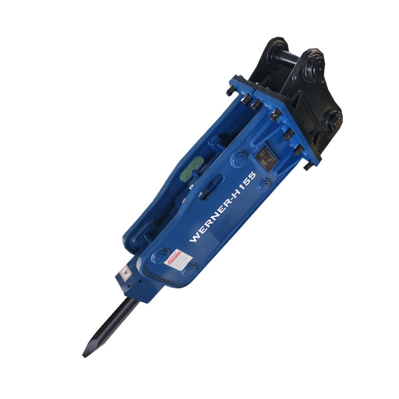 Picon hidraulic Werner-H155 este un picon hidraulic robust și eficient, ideal pentru lucrări de demolare și excavare. Acesta are un diametru al dălții/spitului de 53 mm, fiind adaptat pentru utilaje cu o clasă de greutate de 2.5-4.5 tone. Greutatea totală a piconului este de 151 kg, iar presiunea de operare recomandată este de 90-120 Kg/cm2, asigurând performanțe optime în exploatare. Debitului uleiului hidraulic variază între 25-50 l/min, iar frecvența de lucru atinge până la 600-1100 bătăi pe minut. În plus, acesta este echipat cu furtunuri hidraulice de 12.7 mm și oferă o energie de impact impresionantă de 720 Jouli, garantând fiabilitate și eficiență în cele mai dure condiții. Atasamentul este ideal pentru miniexcavatoare: Caterpillar, Jcb, Hitachi, Takeuchi, Bobcat, Komatsu, Kubota, Hyundai, Volvo.